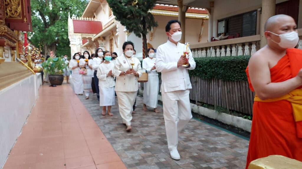 เมื่อวันที่ 15 พฤษภาคม 2565 เทศบาลนครเชียงราย โดยนายวันชัย จงสุทธานามณี นายกเทศมนตรีนครเชียงราย มอบหมายให้นางบังอร มะลิดิน รองนายกเทศมนตรีนครเชียงราย ร่วมประกอบพิธีทางศาสนาภายในพระอุโบสถวัดพระสิงห์ พระอารามหลวง อำเภอเมืองเชียงราย โดยมีนายภาสกร บุญญลักษม์ ผู้ว่าราชการจังหวัดเชียงราย เป็นประธานในพิธี จุดธูปเทียนบูชาพระรัตนตรัย พิธีกรสงฆ์นำกล่าวคำบูชาพระรัตนตรัย อาราธนาศีล ประธานสงฆ์แสดงธรรมกถา เนื่องในวันวิสาขบูชา พร้อมด้วย ผู้อำนวยการสำนักพระพุทธศาสนาจังหวัดเชียงราย วัฒนธรรมจังหวัดเชียงราย ตลอดจนหัวหน้าส่วนราชการ เจ้าหน้าที่ และประชาชนชาวจังหวัดเชียงราย ซึ่งพระครูศรีวรวัฒน์ ผู้ช่วยเจ้าอาวาสวัดพระสิงห์ พระอารามหลวง เป็นประธานฝ่ายสงฆ์ พร้อมด้วยพระภิกษุ กล่าวสัมโมทนียกถา และนำกล่าวคำบูชา เนื่องวันวิสาขบูชา วันสำคัญสากลของโลก ประจำปี 2565 หลังจากนั้น คณะสงฆ์ พร้อมด้วยประธานในพิธี นำหัวหน้าส่วนราชการพุทธศาสนิกชน ร่วมพิธีเวียนเทียนรอบอุโบสถ 3 รอบ พร้อมนำดอกไม้ธูปเทียนถวายเป็นพุทธบูชาแด่พระรัตนตรัย ตามที่ได้จัดไว้ที่บริเวณหน้าพระอุโบสถ เป็นอันเสร็จพิธี ทั้งนี้ผู้ร่วมพิธีได้ปฏิบัติตามมาตรการป้องกันและควบคุมการแพร่ระบาดของโรคติดเชื้อไวรัสโคโรนา 2019(COVID – 19) ของกระทรวงสาธารณสุขอย่างเคร่งครัด.///