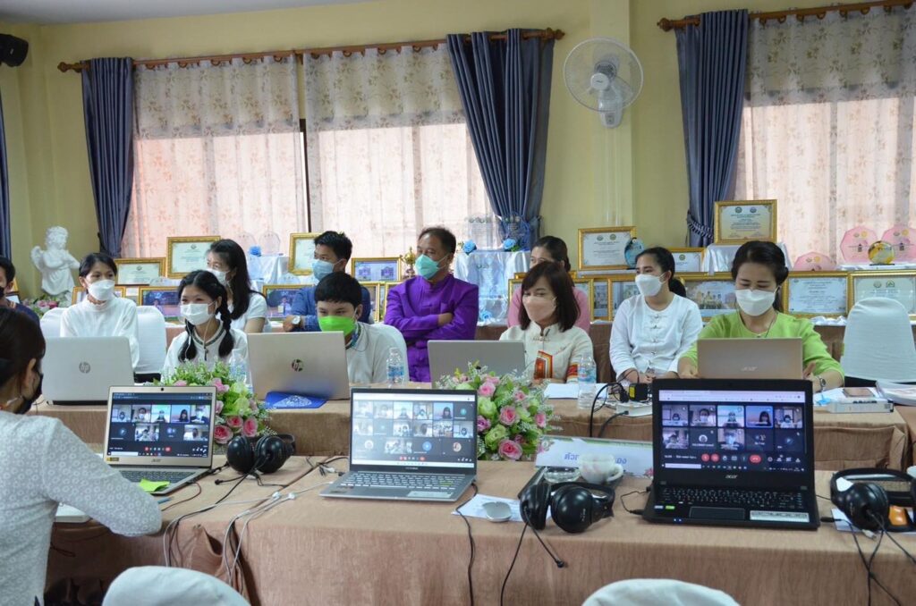 โรงเรียนเทศบาล 7 ฝั่งหมิ่น นางนงค์ลักษณ์ ดุริยพันธ์ ผู้อำนวยการ คณะครู ดำเนินการรับการประเมินคุณภาพภายนอก ระยะที่ 2 : การตรวจเยี่ยมผ่านทางระบบวิธีการทางอิเล็กทรอนิกส์ ประจำปีงบประมาณ พ.ศ.2565 ภายใต้สถานการณ์ COVID-19