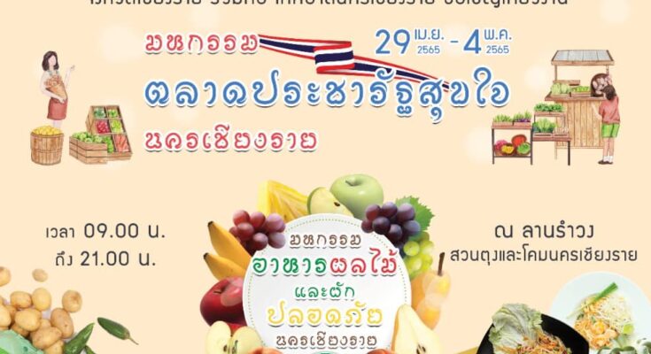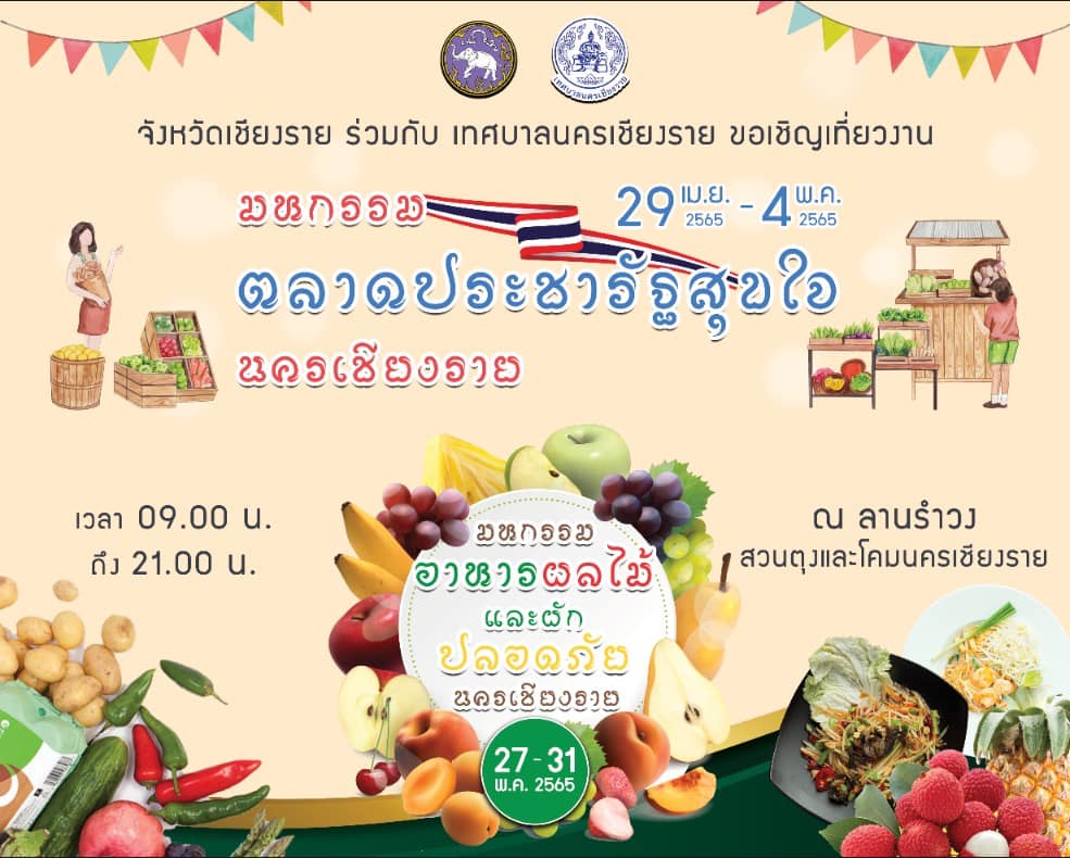 ระหว่างวันที่ 29 เมษายน ถึง 4 พฤษภาคม 2565 ตั้งแต่เวลา 09.00-21.00 น. จะได้ให้พ่อค้าแม่ค้านำร้านอาหารสุขภาพ สินค้าเกษตร ของดีในพื้นที่จังหวัดเชียงราย มาวางจำหน่าย #ที่ลานรำวงย้อนยุคสวนตุงและโคมนครเชียงราย โดยสินค้าจะมีหลากหลาย โดยเน้นไปที่ อาหารเพื่อสุขภาพ อาหารปลอดภัย อาหารพร้อมทาน ถูกสุขอนามัย สะอาด รวมทั้ง สินค้าปลอดภัย FOOD TRUCK ทั้งนี้ทุกร้านค้าที่นำสินค้า อาหารมาจำหน่าย ถือว่าเป็นกลุ่มผู้ที่ได้รับการรับรอง CLEAN FOOD GOOD TASTE รวมทั้งกลุ่มเครือข่าย OTOP และกลุ่มวิสาหกิจชุมชน มากกว่า 40 ร้านค้า