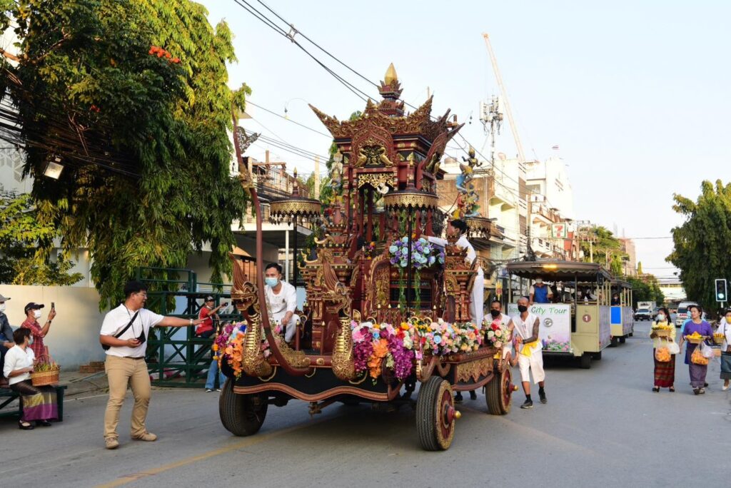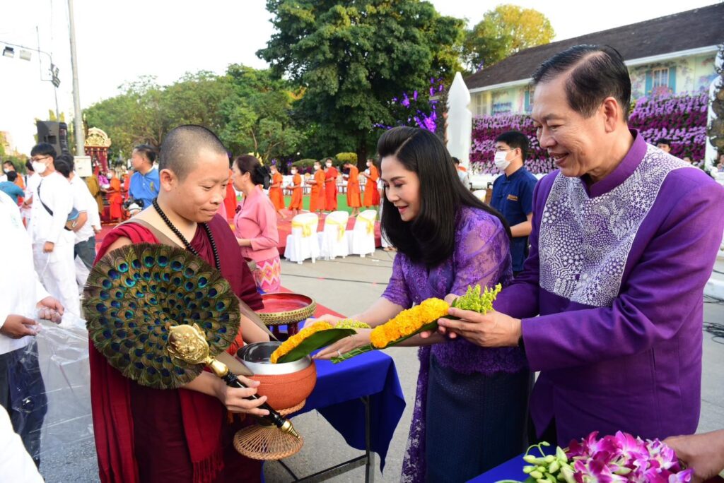 เมื่อวันที่ 30 ธันวาคม 2565 เทศบาลนครเชียงราย โดยนายวันชัย จงสุทธานามณี นายกเทศมนตรีนครเชียงราย พร้อมด้วยคณะผู้บริหารเทศบาลนครเชียงราย นางรัตนา จงสุทธานามณี นายกสมาคมกีฬาแห่งจังหวัดเชียงราย และ ผู้ริเริ่มจัดงาน และผู้ออกแบบ เชียงรายดอกไม้งามทุกๆปี พร้อมด้วยส่วนราชการ นักท่องเที่ยว รวมทั้งชาวเชียงราย ประกอบพิธีทำบุญตักบาตรดอกไม้ หนึ่งเดียวในล้านนา โดยมีนายพุฒิพงศ์ ศิริมาตย์ ผู้ว่าราชการจังหวัดเชียงราย เป็นประธาน จัดขึ้นที่ สวนตุงและโคม เทศบาลนครเชียงราย โดยได้นิมนต์พระสงฆ์ ที่เป็นที่เคารพนับถือของชาวเชียงราย และนักท่องเที่ยว นำออกรับบิณฑบาตร รวมพระสงฆ์และสามเณร 76 รูปซึ่งมีขบวนฟ้อนเชียงราย จากนักเรียนโรงเรียนในสังกัดเทศบาลนครเชียงราย รวม 450 คนพร้อมกันนี้ทางเทศบาลนครเชียงราย ได้อัญเชิญพระพุทธรูปศักดิ์ 9องค์ ขึ้นบนราชรถ 9 จังหวัด ภาคเหนือตอนบน เคลื่อนขบวนให้นักท่องเที่ยว ได้ถวายดอกไม้เป็นพุทธบูชา ซึ่งสร้างความประทับใจให้นักผู้ร่วมทำบุญตักบาตรอย่างมาก เพราะราชรถแต่ละคัน มีความสวยที่ไม่ซ้ำกัน และสร้างโดยศิลปินแต่ละจังหวัด ใช้ระยะเวลาสร้าง 9 ปี โดยในหนึ่งปีจะนำออกให้ประชาชน และนักนักท่องเที่ยวได้ชมในการร่วมพิธีที่สำคัญ เพียง 2 ครั้งเท่านั้น คือ ตักบาตรดอกไม้ และ ตัดบาตรวันขึ้นปีใหม่ส่วนการตักบาตรดอกไม้ ของจังหวัดเชียงราย ได้จัดขึ้นมาตั้งแต่ปี 2559 โดยพระธรรมราชานุวัตร (มรณะภาพ) อดีตเจ้าคณะภาค 6 มีดำริ กับ ทาง นายวันชัย จงสุทธานามณี นายกเทศมนตรีนครเชียงราย ว่า เชียงราย ควรสืบสานประเพณี ทางพระพุทธศาสนา ในทุกด้าน รวมทั้งการ ตักบาตรดอกไม้ ซึ่งสอดคล้องกับทาง นายกวันชัย ที่ต้องการให้พระพุทธศาสนา ได้เข้าถึงชาวพุทธ จะดูได้จากการดำเนินการของเทศบาลนครเชียงราย ในด้านการสืบพระพุทธศาสนาทุกเรื่อง.