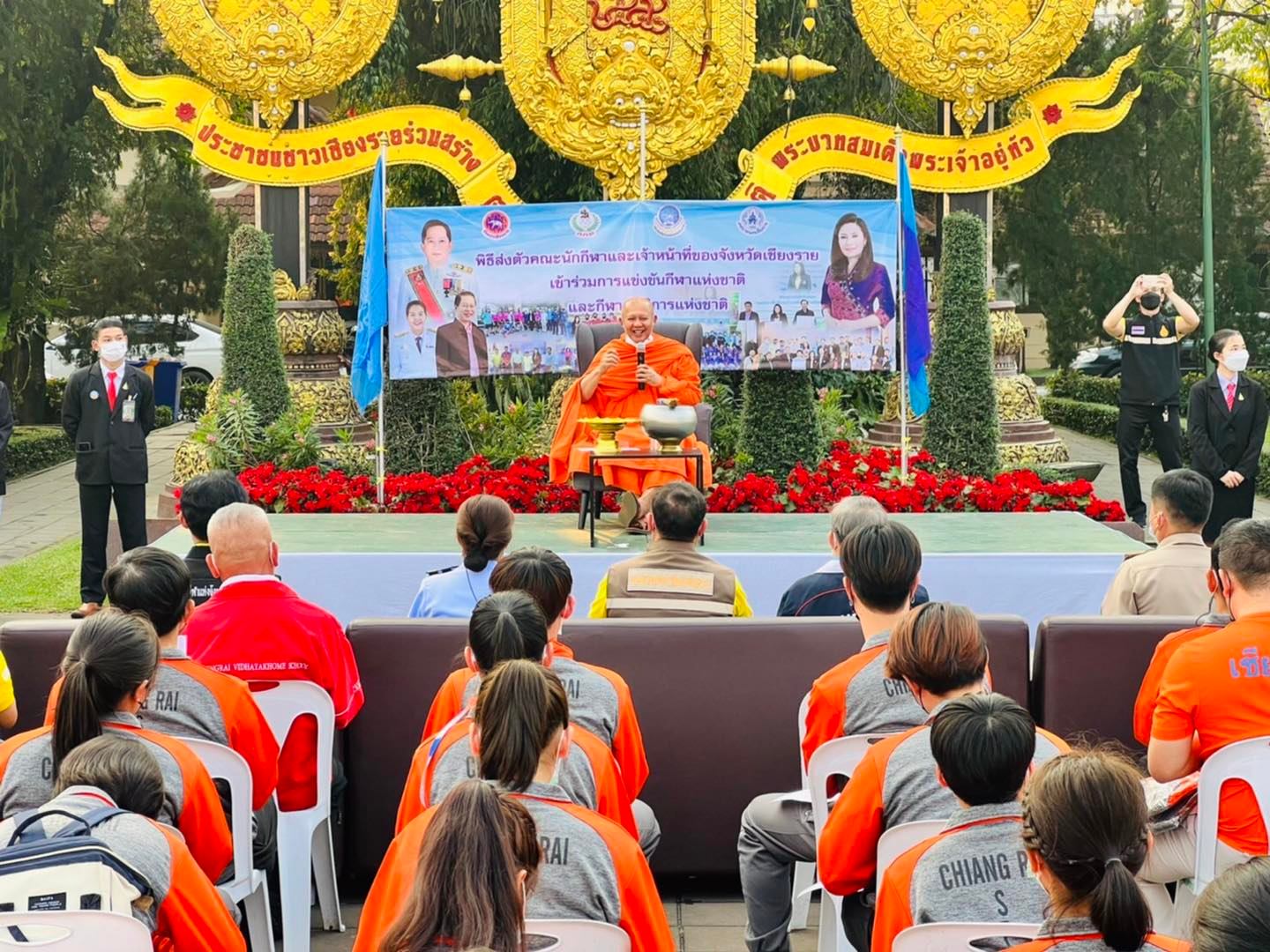 นายวันชัย จงสุทธานามณี นายกเทศมนตรีนครเชียงราย มอบหมายให้ นายธเนศ โกมลธง รองนายกเทศมนตรีนครเชียงราย ในฐานะอุปนายกสมาคมกีฬาแห่งจังหวัดเชียงรายสำนักงานการกีฬาแห่งประเทศไทย จังหวัดเชียงราย ร่วมพิธีส่งตัวนักกีฬาและเจ้าหน้าที่เข้าร่วมการแข่งขันกีฬาแห่งชาติครั้งที่ 47 “ศรีสะเกษเกมส์” และการแข่งขันกีฬาคนพิการแห่งชาติ ครั้งที่ 37 “นครลำดวนเกมส์” บริเวณลานอนุสาวรีย์พญามังราย สมาคมกีฬาแห่งจังหวัดเชียงรายโดยมีพระไพศาลประชาทร วิ. (พระพบโชค) เจ้าอาวาสวัดห้วยปลากั้ง ให้พรและประพรมน้ำมนต์ ให้กับนักกีฬาและเจ้าหน้าที่ โดยมีนางชญาณ์นันท์ เชื้อศิริถาวร ผู้อำนวยการสำนักงานการกีฬาแห่งประเทศไทย จังหวัดเชียงราย ได้มอบเงินอุดหนุนจากการกีฬาแห่งประเทศไทย รวม 1,256,089 บาท ให้กับตัวแทนนักกีฬา และยังได้รับการสนับสนุนชุดตรวต ATK จำนวน 2,000ชุด จากเทศบาลนครเชียงรายจากนั้นนักกีฬาพร้อมเจ้าหน้าที่กราบขอพรจากอนุสาวรีย์พญามังราย ก่อนที่จะเดินทางไปทำการแข่งขัน “ศรีสะเกษเกมส์” ระหว่าง วันที่ 5-25 มีนาคม 2565 และ “นครลำดวนเกมส์” 30มีนาคม -3 เมษายน 2565 โดยมีนักกีฬา เจ้าหน้าที่ ตัวแทนจังหวัดเชียงราย เดินทางแข่งขัน รวมทั้งสิ้น 218คน รวม 23 ชนิดกีฬา และเข้าร่วมแข่งขันกีฬาคนพิการ 7ชนิดกีฬา รวมตัวแทนนักกีฬา และเจ้าที่ 48คน.