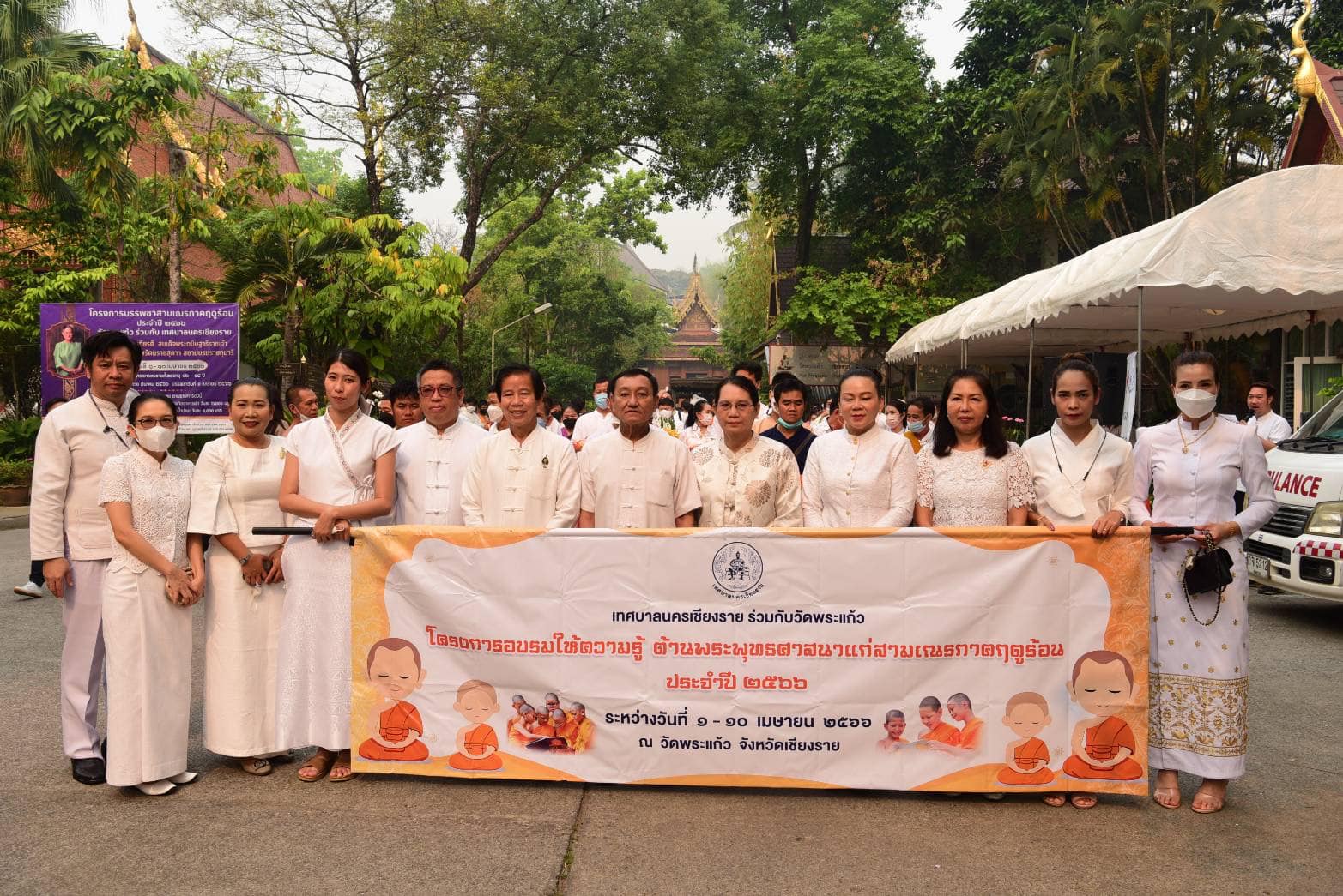 วันเสาร์ที่ 1 เมษายน 2566 เทศบาลนครเชียงราย โดยนายวันชัย จงสุทธานามณี นายกเทศมนตรีนครเชียงราย มอบหมายให้ นายณรงค์ศักดิ์ เตือนสกุล รองนายกเทศมนตรีนครเชียงราย นายสมศักดิ์ เวียงโอสถ ประธานสภาเทศบาลนครเชียงราย สมาชิกสภาเทศบาลนครเชียงราย นางอำไพ จันทร์เงิน ผู้อำนวยการสำนักการศึกษา ข้าราชการและเจ้าหน้าที่เทศบาลนครเชียงราย ร่วมกับวัดพระแก้วเชียงราย พิธีบรรพชาสามเณรภาคฤดูร้อน ประจำปี 2566 โดยได้รับความเมตตาจากพระรัตนมุนี ปุณณมี รองเจ้าอาวาสวัดพระแก้ว ในการจัดบรรพชาสามเณรภาคฤดูร้อน ระหว่างวันที่ 1-10 เมษายน 2566 ณ วัดพระแก้ว อำเภอเมือง จ.เชียงราย การบรรพชาสามเณรเป็นการสร้างพฤติกรรมและสิ่งแวดล้อมใหม่ให้กับเยาวชน หลังลาสิกขาจึงเป็นการปรับพฤติกรรมเด็กให้เข้าสู่วิถีชีวิตที่ดีงาม เป็นลูกที่ดีของพ่อแม่ เป็นศิษย์ที่ดีของครูอาจารย์ เป็นพลเมืองดีของชาติและเกิดพลังสืบสานพระพุทธศาสนาสืบไป.