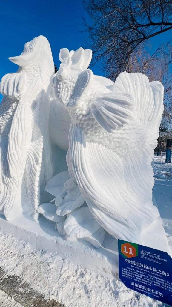 เทศบาลนครเชียงรายโดย นายวันชัย จงสุทธานามณี นายกเทศมนตรีนครเชียงราย ขอแสดงความยินดี การแข่งขันแกะสลักหิมะและน้ำแข็งระดับนานาชาติ ในนามทีม Fighting Frost TH กับผลงานชื่อ “雪域绽放的斗艳之鱼 – ปลากัดที่เบ่งบานในแดนหิมะ” ซึ่งถ่ายทอดอัตลักษณ์ไทยผ่านศิลปะร่วมสมัยอย่างลึกซึ้ง