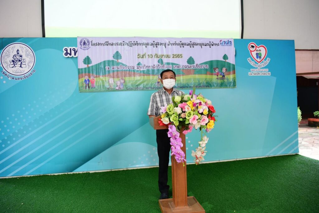 เทศบาลนครเชียงราย โดยนายวันชัย จงสุทธานามณี นายกเทศมนตรีนครเชียงราย มอบหมายให้ นายณรงค์ศักดิ์ เตือนสกุล รองนายกเทศมนตรีนครเชียงรายเป็นประธาน พร้อม สมาชิกสภาเทศบาลนครเชียงราย นางพรทิพย์ จันทร์ตระกูล รก.ผู้อำนวยการกองการแพทย์ งานเวชกรรมสังคม กองการแพทย์ ทำโครงการศูนย์บริการแพทย์ทางเลือกเพื่อสุขภาพประจำปี 2565 ให้แก่ผู้ป่วยโรคเรื้อรังอายุ 35 ถึง 60 ปีในเขตพื้นที่เทศบาลนครเชียงรายโดยมีการอบรมจากวิทยากรกลุ่มงานแพทย์แผนไทยและแพทย์ทางเลือก โรงพยาบาลเชียงรายประชานุเคราะห์ ณลานกิจกรรมมหาวิทยาลัยวัยที่สามเทศบาลนครเชียงราย.