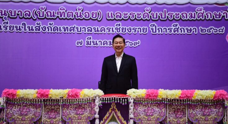 ในพิธีมอบวุฒิบัตร “บัณฑิตน้อย” ให้แก่นักเรียนชั้นอนุบาล 3 และนักเรียนชั้นประถมศึกษาปีที่ 6 ของโรงเรียนในสังกัดเทศบาลนครเชียงราย ประจำปีการศึกษา 2568 ณ ศูนย์ประชุมนครเชียงราย อาคารเจียงแสน