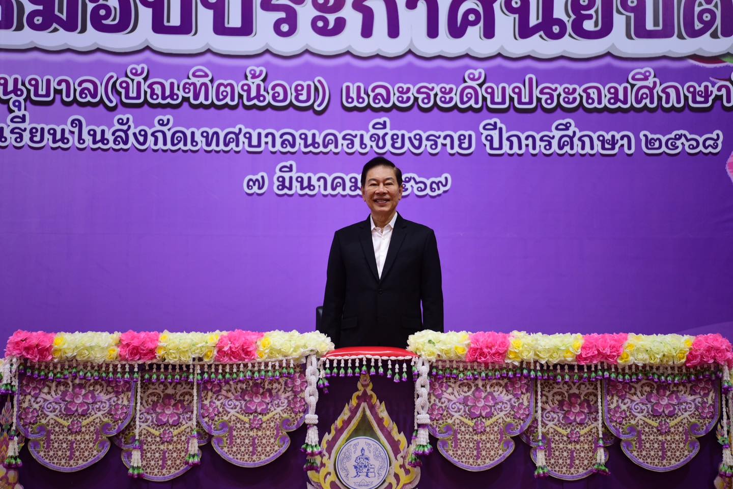 วันเสาร์ที่ 7 มีนาคม 2569 เทศบาลนครเชียงราย โดย นายวันชัย จงสุทธานามณี นายกเทศมนตรีนครเชียงราย พร้อมคณะผู้บริหาร สมาชิกสภาเทศบาลนครเชียงราย นายโชติศิริ ดารายน นายกสมาคมสื่อมวลชนและนักประชาสัมพันธ์เชียงราย ดร.จตุรัฐชัย จินตนาสิทธิคุณ รองปลัดเทศบาล รักษาราชการแทนปลัดเทศบาลนครเชียงราย นางอำไพ จันทร์เงิน ผู้อำนวยการสำนักการศึกษา ผู้อำนวยการโรงเรียนในสังกัดเทศบาลนครเชียงราย และข้าราชการเจ้าหน้าที่เทศบาลนครเชียงราย ร่วมแสดงความยินดีกับนักเรียนที่สำเร็จการศึกษา