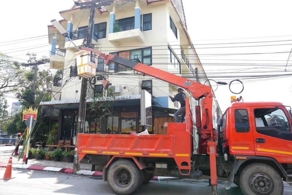 การไฟฟ้าส่วนภูมิภาคและเทศบาลนครเชียงราย ดำเนินการรื้อถอนสายสื่อสาร รื้อสายไฟ และตัดเสาไฟฟ้าออก“ ในโครงการก่อสร้างระบบเคเบิลไฟฟ้าใต้ดิน” ในเขตพื้นที่เมืองชั้นใน มุ่งปรับปรุงภูมิทัศน์เมืองให้สวยงาม เป็นระเบียบ เพิ่มความปลอดภัย และยกระดับคุณภาพชีวิตประชาชน