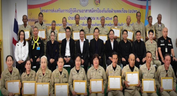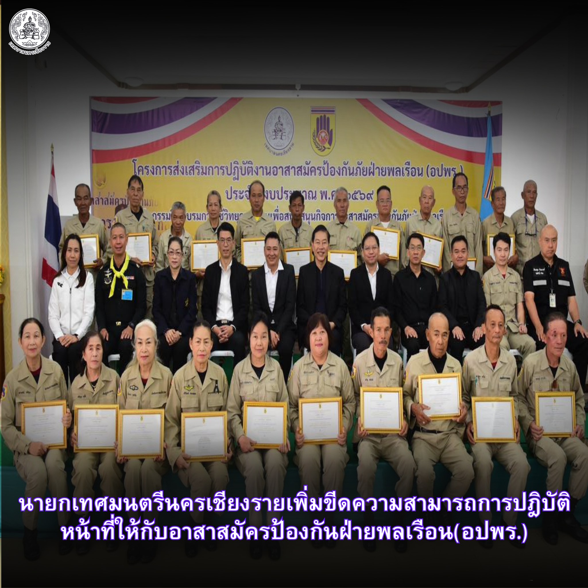 วันพุธที่ 3 ธันวาคม 2568 เทศบาลนครเชียงรายโดย นายวันชัย จงสุทธานามณี นายกเทศมนตรีนครเชียงราย ในฐานะผู้อำนวยการกองอำนวยการป้องกัน เชียงรายและบรรเทาสาธารณภัยเทศบาลนครเชียงราย เป็นประธาน โครงการส่งเสริมการปฎิบัติงานอาสาสมัครป้องกันภัยฝ่ายพลเรือน (อปพร.) ประจำปี 2569 พร้อมด้วย ร.ต.อ.ดร. ธนรัช จงสุทธานามณี อดีตเลขานุการรัฐมนตรีว่าการกระทรวงการต่างประเทศและเลขานุการรัฐมนตรีว่าการกระทรวงการคลัง ดร.จตุรัฐชัย จินตนาสิทธิคุณ รก.ปลัดเทศบาลนครเชียงราย ข้าราชการและเจ้าหน้าที่สำนักปลัดเทศบาลนครเชียงรายมาร่วมพิธีเปิดการอบรมซึ่งมีพี่น้องประชาชนชุมชน 4 เขต 63 ชุมชน มาร่วมเป็นจิตอาสาอปพร. จำนวน 160 คน