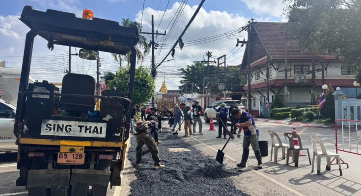วันที่ 14 พฤศจิกายน 2568 เทศบาลนครเชียงรายโดย นายวันชัย จงสุทธานามณี นายกเทศมนตรีนครเชียงราย มอบหมายให้นายธเนศ โกมลธง รองนายกเทศมนตรีนครเชียงราย นายรุ่งธรรม ธรรมรักษ์ ผู้อำนวยการกองช่าง และเจ้าหน้าที่ ลงพื้นที่ดำเนินกาลาดดยางผิวถนนบริเวณด้านหน้าสำนักงานเทศบาลนครเชียงราย เพื่อปรับปรุงผิวการจราจรให้มีความเรียบ สามารถสัญจรได้อย่างสะดวกและปลอดภัยมากยิ่งขึ้น