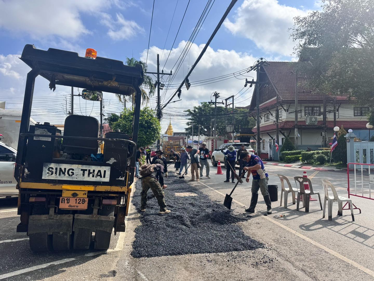 วันที่ 14 พฤศจิกายน 2568 เทศบาลนครเชียงรายโดย นายวันชัย จงสุทธานามณี นายกเทศมนตรีนครเชียงราย มอบหมายให้นายธเนศ โกมลธง รองนายกเทศมนตรีนครเชียงราย นายรุ่งธรรม ธรรมรักษ์ ผู้อำนวยการกองช่าง และเจ้าหน้าที่ ลงพื้นที่ดำเนินกาลาดดยางผิวถนนบริเวณด้านหน้าสำนักงานเทศบาลนครเชียงราย เพื่อปรับปรุงผิวการจราจรให้มีความเรียบ สามารถสัญจรได้อย่างสะดวกและปลอดภัยมากยิ่งขึ้น