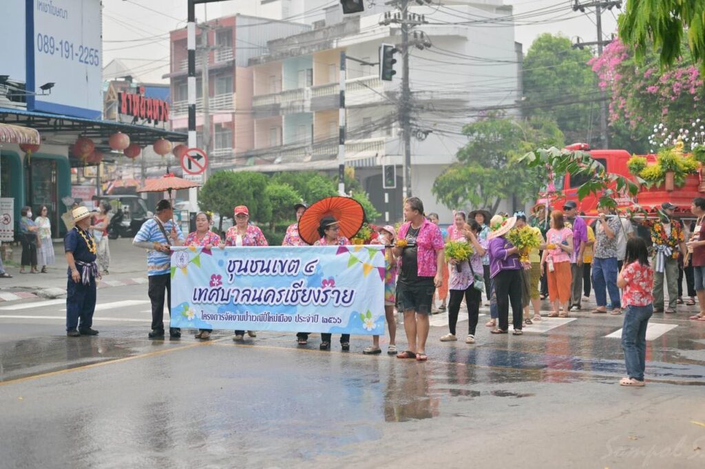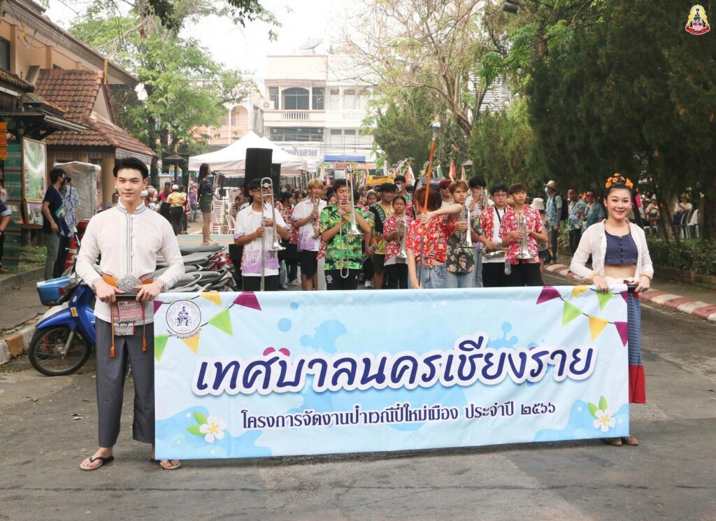 วันพฤหัสบดีที่ 13 เมษายน 2566 เทศบาลนครเชียงราย โดยนายวันชัย จงสุทธานามณี นายกเทศมนตรีนครเชียงราย และคณะผู้บริหารเทศบาล ประธานสภา สมาชิกสภาเทศบาลเทศบาลนครเชียงราย ผู้อำนวยการสถานศึกษา พร้อมด้วยคณะครูโรงเรียนสังกัดเทศบาลนครเชียงรายร่วมสักการะขอพรองค์พ่อขุนเม็งรายมหาราชพญามังราย เนื่องในโอกาสวันป๋าเวณี ปี๋ใหม่เมืองจุลศักราช 1385 หรือวันสงกรานต์ ประจำปี 2566 พร้อมแห่ขบวนเดินขบวนจากอนุสาวรีย์พ่อขุนเม็งรายมหาราช ถึงบริเวณลานรำวงย้อนยุค สวนตุงและโคมเทศบาลนครเชียงราย โดยการแข่งขันรายงานผลการแข่งขันอาหารชุมชน
