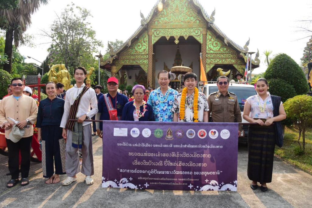 วันอาทิตย์ที่ 14 เมษายน 2567 ร.ต.อ.ดร.ธนรัช จงสุทธานามณี เลขานุการรัฐมนตรีว่าการกระทรวงการต่างประเทศ นายวันชัย จงสุทธานามณี นายกเทศมนตรีนครเชียงราย นางอุบลรัตน์ พ่วงภิญโญ รองผู้ว่าราชการจังหวัดเชียงราย คณะผู้บริหาร และคณะศรัทธาจากวัดศรีมงคล ตำบลป่าอ้อดอนชัย อ.เมือง จ.เชียงรายอัญเชิญพระเจ้าสองสีขึ้นประดิษฐานบนรถบุษบก ประกอบพิธีวัดเชตุพน โดยมีพระครูวิจิตรธรรมาภิรักษ์ เจ้าอาวาสวัดเชตุพน ประธานฝ่ายสงฆ์ จากนั้นได้อัญเชิญพระเจ้าสองสี วัดศรีมงคล (สันสลี) เคลื่อนขบวนไปเส้นทาง “สันโค้งถนนคนเล่นน้ำ นครเชียงราย“ ให้ประชาชนชาวเชียงราย และนักท่องเที่ยวได้สรงน้ำ และสักการะเนื่องในป๋าเวณีปี๋ใหม่เมืองจ.ศ.1386 เริ่มจากวัดเชตุพน (สันโค้งน้อย) ไปตามถนนสันโค้งน้อยผ่านผ่านถนนคนเล่นน้ำนครเชียงรายจนสิ้นสุดหน้าโรงเรียนเทศบาล 5 เด่นห้า