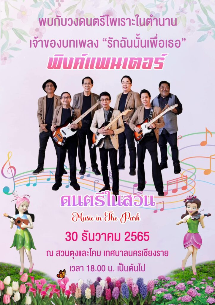 เทศกาลเชียงรายดอกไม้งาม ปีที่ 19 เทศบาลนครเชียงรายโดยนายวันชัย จงสุทธานามณี นายกเทศมนตรีนครเชียงราย ได้รังสรรค์ “เทศกาลเชียงรายดอกไม้งาม” สัญญลักษณ์หนึ่ง เมื่อมาเยือนเชียงรายดอกไม้งามจะพบกับความสวยงามด้วยนวัตกรรม ศิลปะดอกไม้ที่สรรค์สร้างขึ้นมา ให้มีความแตกต่างกันไปทุกๆปี โดยในปีนี้เทศบาลนครเชียงรายรังสรรค์รูปแบบดอกไม้ “จากวันนั้น…สู่วันนี้” #โดยจะมีพิธีเปิดในวันที่29ธันวาคม2565 พบกับศิลปินกันต์ นภัทร วันที่ 30 ธันวาคม 2565 พิธีตักบาตรดอกไม้ หนึ่งเดียวในล้านนา และพบกับวงดนตรีไพเราะในตำนาน เจ้าของบทเพลง “รักฉันนั้นเพพื่อเธอ” พิงค์แพนเตอร์ เทศบาลนครเชียงรานขอเชิญชวนนักท่องเที่ยวและพี่น้องชาวเชียงรายทุกท่านมาร่วมชมความงามดอกไม้ และรับฟังเพลงอันไพเราะท่ามกลางสวนดอกไม้ ณ สวนตุงและโคม เทศบาลนครเชียงราย.
