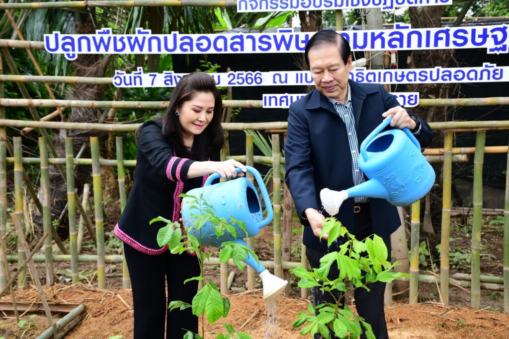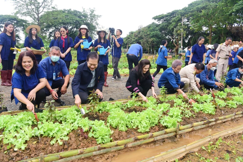 วันที่ 7 สิงหาคม 2566 เทศบาลนครเชียงราย นำโดยท่านนายกเทศมนตรีนครเชียงราย นายวันชัย จงสุทธานามณี ปลัดเทศบาลนครเชียงราย, นายสมบุญ หิรัญยโชติ พร้อมได้รับเกียรติจากหัวหน้าส่วนราชการ, นายกสมาคมกีฬาแห่งจังหวัดเชียงราย นางรัตนา จงสุทธานามณี และคณะผู้บริหาร ข้าราชการ สมาชิกสภา เจ้าหน้าที่ คณะครู นักเรียนโรงเรียนในสังกัดเทศบาลนครเชียงราย รวมถึงพี่น้องชุมชนป่างิ้ว ร่วมในกิจกรรมอบรมเชิงปฏิบัติการปลูกพืชผักปลอดสารพิษ ตามหลักปรัชญาเศรษฐกิจพอเพียง ภายใต้โครงการเพิ่มศักยภาพกลุ่มแกนนำชุมชนในเขตเทศบาลนครเชียงราย เพื่อให้พี่น้องในชุมชน เยาวชน และประชาชนทั่วไปในเขตเทศบาลฯ ได้เพิ่มทักษะและความรู้ในวิธีการปลูกพืชผักปลอดสารพิษและได้ลงมือปฏิบัติจริง สามารถนำเอาความรู้และประสบการณ์ไปประกอบอาชีพด้านการเกษตร เพื่อสร้างความมั่นคงทางอาหารและช่วยลดผลกระทบต่อสิ่งแวดล้อมที่เกิดจากการใช้สารเคมีในการกำจัดศัตรูพืช ชุมชนยังสามารถนำเอาความรู้ไปถ่ายทอดต่อ ส่งเสริมให้เกิดความสามัคคีในการรวมกลุ่มทำกิจกรรม และยังสร้าง Green Community กระชับความสัมพันธ์ให้ครอบครัวและคนในชุมชน สร้างความเข้มแข็งทั้งกายและใจให้ชาวเชียงรายได้บริโภคพืชผักปลอดสารพิษและดีต่อสุขภาพ ประหยัดและทำตามได้ไม่ยาก