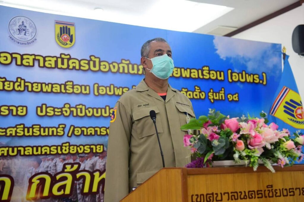เทศบาลนครเชียงราย โดย นายวันชัย จงสุทธานามณี นายกเทศมนตรีนครเชียงราย มอบหมายให้ ดร.ปรีชา อนุรักษ์ รองนายกเทศมนตรีนครเชียงราย เป็นประธานพิธีเปิด -พิธีปิด พร้อม ประธานสภาเทศบาลนครเชียงราย สมาชิกสภาเทศบาลนครเชียงราย ข้าราชการสำนักปลัด เทศบาลนครเชียงราย โดยมีนางอารีย์ ศรีนิเวศน์ หัวหน้าสำนักปลัดเทศบาลนครเชียงราย กล่าวรายงาน ในโครงการส่งเสริมการปฏิบัติงานอาสาสมัครป้องกันภัยฝ่ายพลเรือน (อปพร.) ประจำปี 2565 (การฝึกอบรมอาสาสมัครป้องกันภัยฝ่ายพลเรือน (อปพร.) หลักสูตรจัดตั้งรุ่นที่ 14 โครงการส่งเสริมการปฏิบัติงานอาสาสมัครป้องกันภัยฝ่ายพลเรือน (อปพร.) ประจำปี 2565 (การฝึกอบรมอาสาสมัครป้องกันภัยฝ่ายพลเรือน (อปพร.) เพื่อฝึกอบรมประชาชน นักเรียน อาสาสมัครมูลนิธิ สมาคม และบุคคลในการพัฒนาความรู้เกี่ยวกับด้านสาธารณภัยระเบียบ กฎหมายที่เกี่ยวข้องของ อปพร. ซึ่งสามารถปฏิบัติหน้าที่ได้อย่างถูกต้องเหมาะสม ในการปฏิบัติหน้าที่ช่วยเหลือประชาชน ระหว่างวันที่ 20,21,27,28 และพิธีปิดในวันจันทร์ที่ 29 สิงหาคม 2565 ณ อาคารเทิดพระเกียรติ 90 ปี สมเด็จพระศรีนรินทร์ และอาคารงานป้องกันฯ (หน้าวัดดงหนองเป็ด).