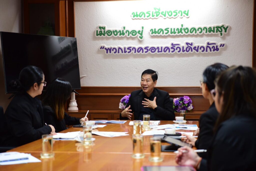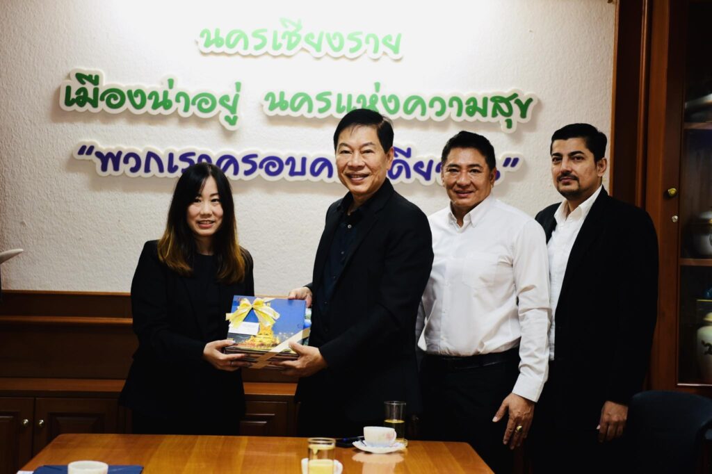 วันจันทร์ที่ 24 พฤศจิกายน 2568 เทศบาลนครเชียงรายโดย นายวันชัย จงสุทธานามณี นายกเทศมนตรีนครเชียงราย นายภาธร์ รังษีกุลพิพัฒน์ รองนายกเทศมนตรีนครเชียงราย นายวินัย โซนี่ ผู้เชี่ยวชาญพิเศษ ด้านการพัฒนาเมือง เทศบาลนครเชียงราย ต้อนรับนางสาวสิริกัญ วนัสบดีกุล รองผู้อำนวยการฝ่ายสิ่งแวดล้อม บริษัท ท่าอากาศยานไทย จำกัด (มหาชน) รองผู้อำนวยการฝ่ายท่าอากาศยาน พร้อมคณะ เข้าพบ