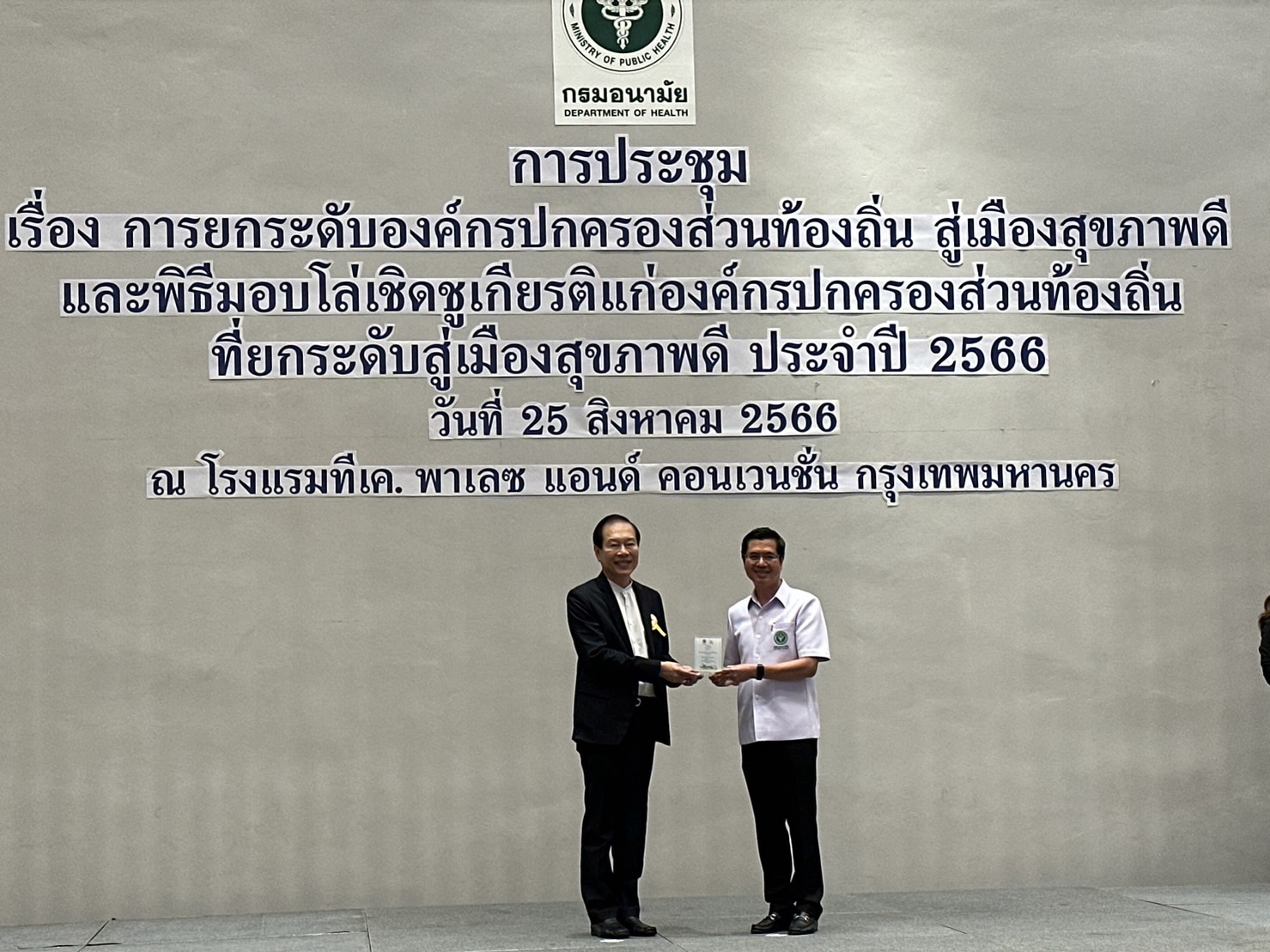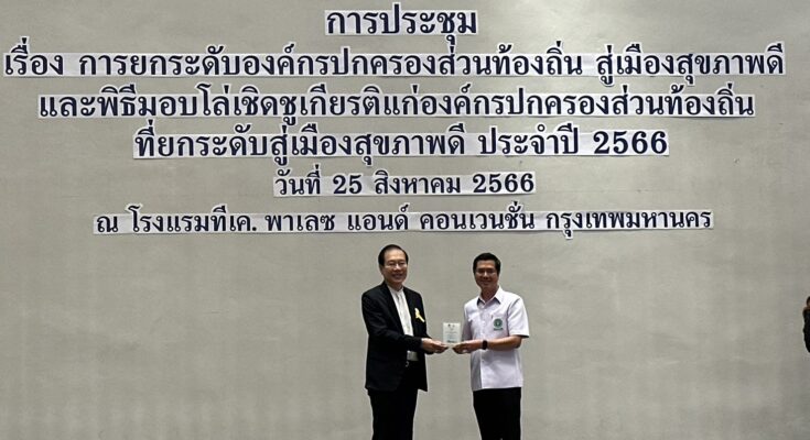 วันที่ 25 สิงหาคม 2566 นายกเทศมนตรีนครเชียงราย นายวันชัย จงสุทธานามณี พร้อมด้วย ดร.ปรีชา อนุรักษ์ รองนายกฯ และนางนงคราญ กันกา ผู้อำนวยการกองสาธารณสุขและสิ่งแวดล้อม เดินทางเข้าร่วมการประชุมยกระดับองค์กรปกครองส่วนท้องถิ่น สู่เมืองสุขภาพดี พร้อมรับมอบโล่เชิดชูเกียรติที่เทศบาลนครเชียงรายได้ผ่านการประเมินรับรองตามมาตรฐานเมืองสุขภาพดี ระดับเงิน ประจำปี 2566 จาก นพ.อรรถพล แก้วสัมฤทธิ์ รองอธิบดีกรมอนามัย ณ โรงแรมทีเค พาเลซ แอนด์ คอนเวนชั่น กรุงเทพมหานคร