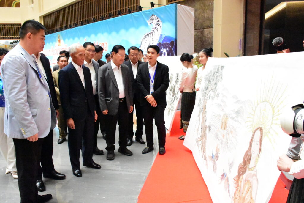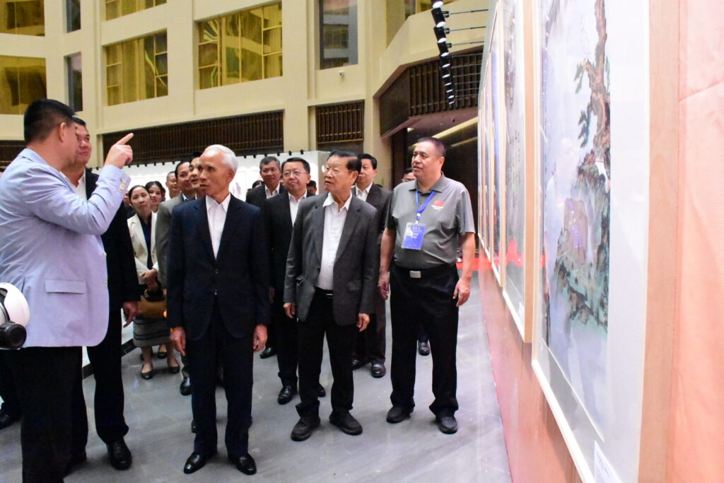 นิทรรศการจัดขึ้น ณ ห้อง MF โรงแรมดาวดอกงิ้ว ภายในเขตเศรษฐกิจพิเศษสามเหลี่ยมทองคำ เมืองต้นผึ้ง แขวงบ่อแก้ว สปป.ลาว โดยมี ท่านคำพัน เผียยะวง กรรมการกรมการเมืองศูนย์กลางพรรค