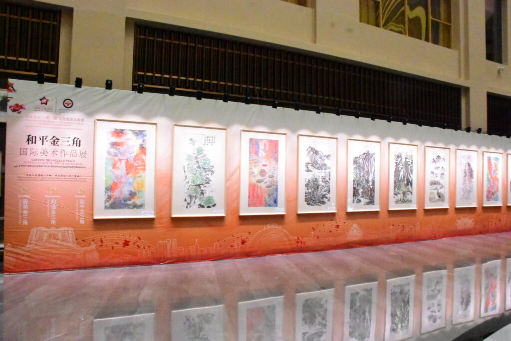 สำหรับนิทรรศการศิลปะนานาชาติ “สามเหลี่ยมทองคำสันติภาพ” ได้จัดขึ้นอย่างต่อเนื่องเป็นปีที่ 3 นับตั้งแต่เริ่มจัดในช่วงที่ผ่านมา โดยมีเป้าหมายเพื่อสร้างเวทีให้ศิลปินได้แสดงศักยภาพ แลกเปลี่ยนมุมมองทางศิลปะ และเปิดโอกาสให้ประชาชนผู้เข้าชมได้เข้าถึงคุณค่า ความหมาย และความสำคัญของผลงานศิลปะหลากหลายรูปแบบ อันเป็นส่วนหนึ่งของการขับเคลื่อนภารกิจสันติภาพ การเผยแพร่คำมั่นสัญญา และสะท้อนพลังการพัฒนาของเขตเศรษฐกิจพิเศษสามเหลี่ยมทองคำ