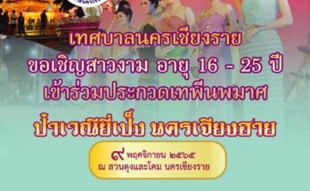 ข่าวเทศบาลนครเชียงรายเปิดรับสมัคร ประกวดเทพีนพมาศ เทศบาลนครเชียงราย. 1 พฤศจิกายน 20221 พฤศจิกายน 2022 - by นายใหญ่ สำนักการศึกษา โดย นางอำไพ จันท … เปิดรับสมัคร ประกวดเทพีนพมาศ เทศบาลนครเชียงราย. Read More